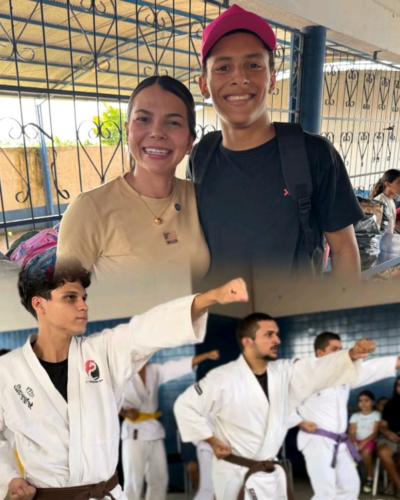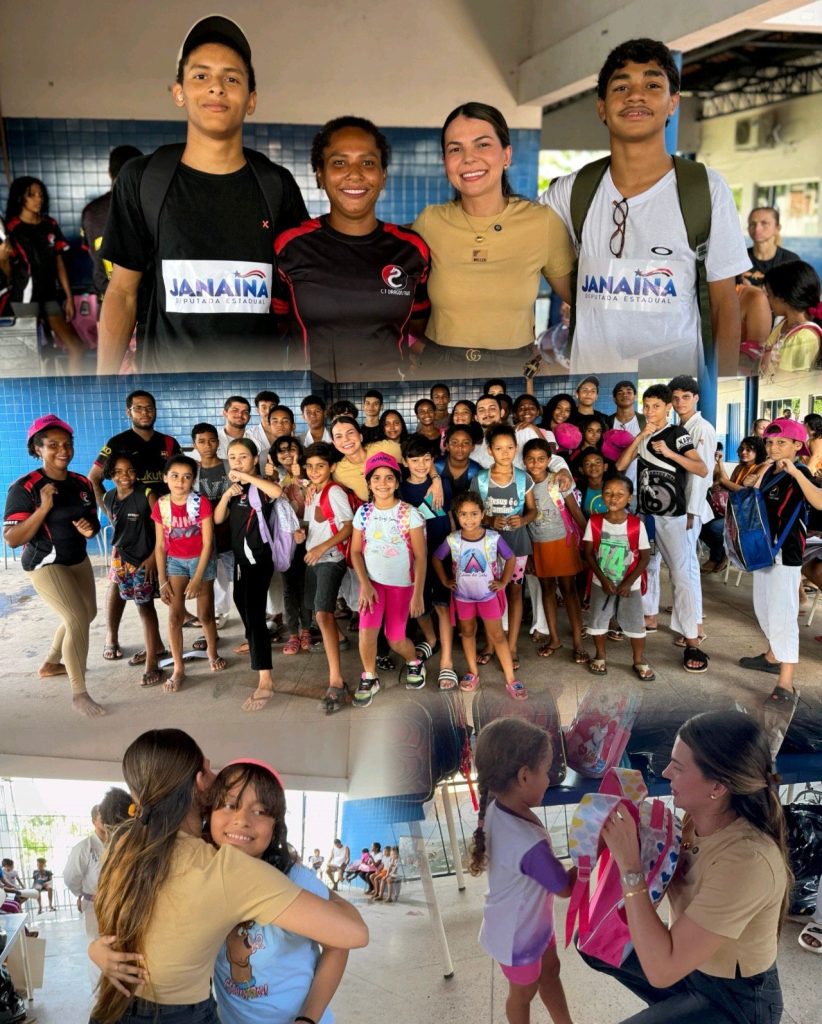 Um dos destaques foi o projeto Raízes do Futuro, desenvolvido na Vila Vitória, onde crianças têm acesso a atividades esportivas, acompanhamento na área da saúde e atenção integral, graças ao trabalho voluntário de moradores e parceiros. Ao lado de Edna Monteiro, presidente da Associação de Moradores do bairro, a deputada realizou a entrega de kits escolares às crianças atendidas pelo projeto, contribuindo para o incentivo à educação e à permanência escolar.